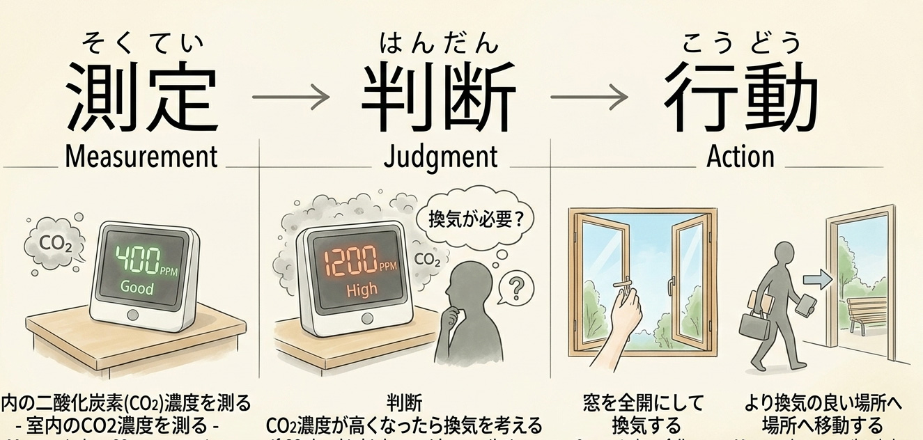 感染症の多く、特に呼吸器系の感染症は、人から人にうつっていくというよりも、感染した人がいる場所の空間で呼吸をしていることでうつっていることを認識することが大事である。その場合、その空間にウイルスが存在するかどうかを判断する手段はないが、代わりにCO₂ を指標にすると、空気の危険度を直感的に理解することが可能になる。いわゆる、CO2センサーと呼ばれている機器である。筆者は、免疫が弱い人が安心して外に出られる社会をつくるため、 空気の状態を“見える化”する超小型のデバイス AirClip (仮につけている名称)の開発に着手している。 CO₂ を指標に空気の危険度を直感的に伝える仕組みを構築し、 空気の透明性を取り戻すことが人々の自由と尊厳を守ると考えている。